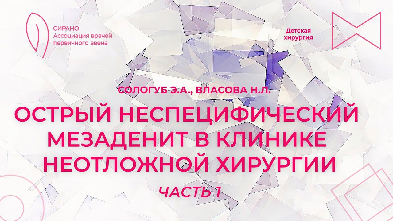 23.09.23 16:30 Острый неспецифический мезаденит в клинике неотложной хирургии. Часть 1