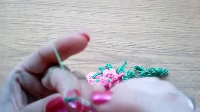 В этом видеоуроке мы с вами вяжем веточку с 5 листочками.Веточка вывязывается с середины верхнего лепестка розочки. Два нижних листочка одной веточки присоединяются к нижним листочкам соседних веточек.