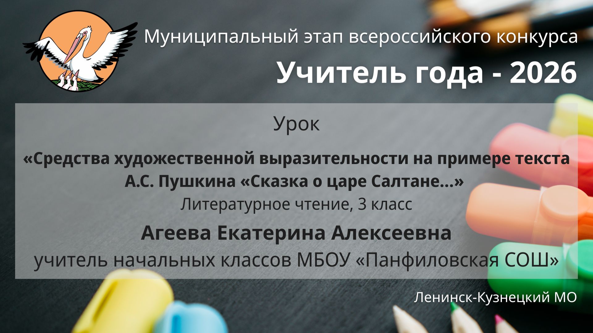 Агеева Екатерина Алексеевна, учитель начальных классов МБОУ «Панфиловская СОШ» Литературное чтение, 3 класс. «Средства художественной выразительности на примере текста А.С. Пушкина «Сказка о царе Салтане…» К материалу: https://nmclk.ru/22587/k-ug_2026