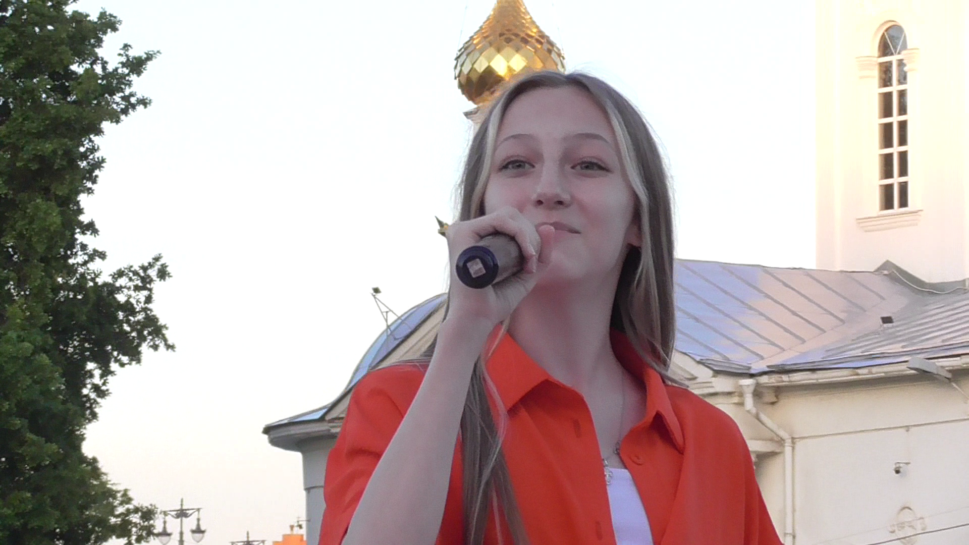 Девушка поёт песню: На большом воздушном шаре