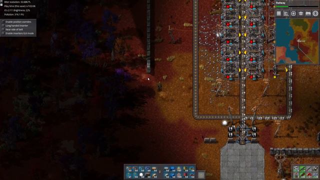 Here we go! Time to build lots of walls. Hopefully it should go smoothly since we did so much planning. --- Greetings. :) In this playthrough I will be using Angels mods and Bobs mods, as well as lots of others. I'm going to try to make this video series informative and educational. I'm experienced with these mods and I know how complicated they are, so I hope I can help you understand them better. If you thought the stock game was complicated, Factorio with these mods is 10x crazier. They dramatically expand the production chains, and offer an almost incomprehensible amount of research options. One of the biggest mods is Angels. Primarily dealing with resource refining, they dramatically expand the amount of steps needed to process resources, as well as introducing many byproducts which must be thoughtfully managed. The other big mod is Bobs. These expand upon the manufacturing side of your factory, adding many new elements to process, higher tier machines, and complex recipes. There's lots of smaller mods in play as well. One notable mod is AAI Industries, which adds new parts for the early game, and makes the burner stage more meaningful by requiring research for electric machines. Science Cost Tweaker makes the recipes for science more complex and takes advantage of the special resources from the other mods, as well as increase their total resource cost. Finally I want to mention Space Extension, which expands the end game, requiring many rocket launches to construct a new spaceship in orbit, so that the hero can finally escape the Biter's planet. Megabase, here we come. :D I've got lots of smaller mods installed. Let me know if you're wondering about a specific mod. If I'm not using it, maybe I can include it in a future episode. :D --- In this game you're stranded on an alien world populated by dangerous "Biters." In order to survive you need to mine resources, research technology, and build a rocket to escape the planet. This task is too monumental for your bare hands. You'll be applying your logic and creativity to build a unique factory composed of many machines that will labor away on your behalf. But you are not alone. The Biters are a constant threat requiring you to build up your defenses. The best part of the game is how you unlock many forms of automation, which saves you time to work on more important tasks. Each new technology fundamentally changes how you build the factory, which requires constant self improvement on your part. There is a large learning curve, but that's the fun of it! ^_^ The game is well-supported by it's developers, and there is a thriving modding community with an endless amount of mods to extend your enjoyment of the base game.