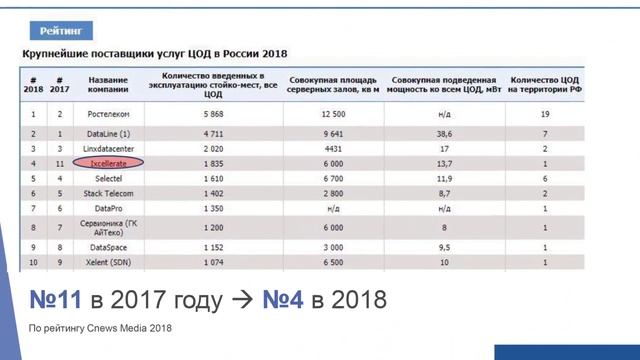 IXсellerate, оператор ведущего в России коммерческого дата-центра, объявил о начале строительства второго центра обработки данных в Москве и планируемых инвестициях в размере $260 млн, согласно 5-ти летней стратегии развития в России. В рамках масштабной инвестиционной программы предполагается построить и приобрести дополнительные площадки под ввод новых мощностей в Московском регионе до 2023 года. Помимо действующего дата-центра IXсellerate Moscow One компания планирует через 5 лет управлять сетью из не менее чем 4-х объектов, а совокупная емкость всех дата-ценров IXсellerate превысит 15 тыс. стойко-мест, что, по оценкам компании, позволит занять около 25% локального рынка. Одним из первых шагов к расширению доли на российского рынке станет первый транш инвестиций в размере $30 млн в 2019 г. в строительство и запуск второго дата-центра IXсellerate – Moscow Two.