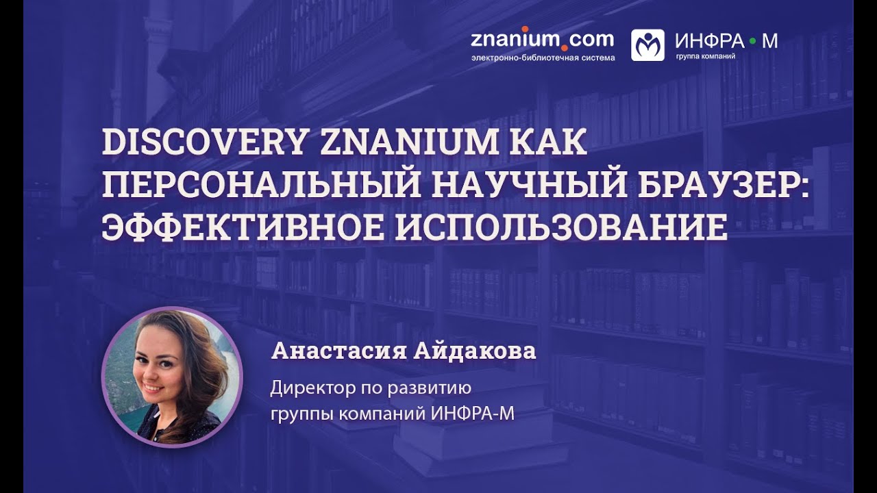 Директор по развитию ГК ИНФРА-М Анастасия Айдакова делится профессиональной точкой зрения на тему: «Discovery Znanium как персональный научный браузер». В этом видео вы узнаете: — как организовать эффективный поиск по ресурсам открытого доступа; — как быстро определить научность публикации; — как бесплатно проверить текст на некорректные заимствования; — как без труда закрыть редкие дисциплины, по которым пока нет учебников.