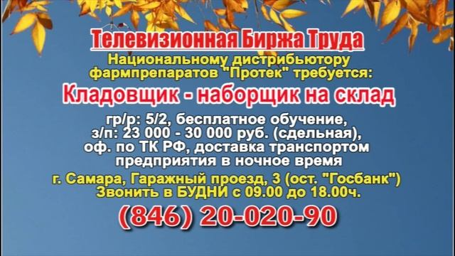 Вакансии и телефоны прямых работодателей в специализированной программе по трудоустройству "Телевизионная Биржа Труда" - г.САМАРА, г.ТОЛЬЯТТИ