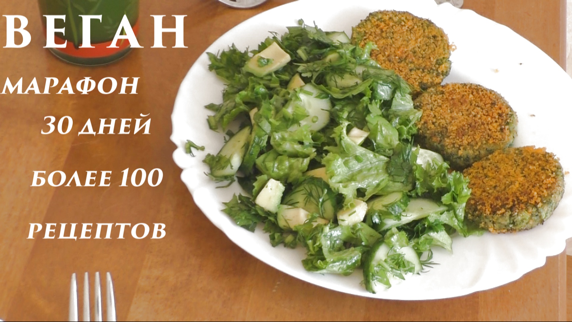 Котлеты из брокколи и зелёный салат. Веганский марафон. Ужин 30 дня