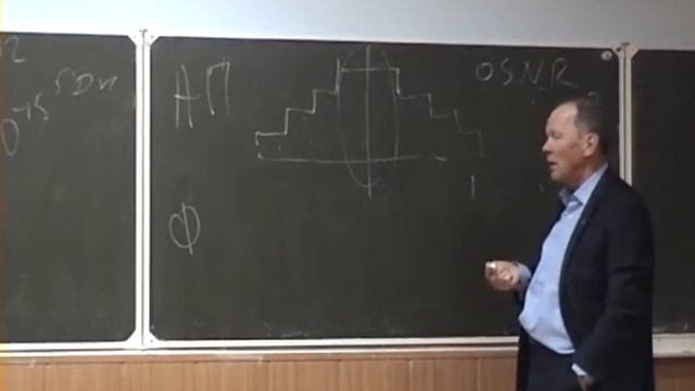 Семинар ИВО РАН Москва 15 декабря 2015 Докладчик Некучаев Александр Орович Увеличение скорости в два раза путем передачи данных в двух поляризациях Ox и Oy потребует двукратного увеличения мощности усилителей. Под водой это просто невозможно, а на суше нужен upgrade. В новом способе ( 2*4/15)Р=(8/15)Р - это все еще почти в два раза меньше, оставляя возможность увеличения скорости в разы без переделок на линии. 2. При большом количестве каналов мощность на канал падает как квадрат, а не по линейному закону как при малом количестве каналов. Отсюда весьма проблематичной становится полная загрузка каналов при больших расстояниях. В предлагаемом способе все каналы будут загружены и чем их больше тем лучше. 3. Предлагаемый способ требует On/Off Keying (OOK) на каждой длине волны перед оптическим мультиплексором с точностью выше частоты микро тактов. Джиттер каждой длины волны относительно других не важен, так как на каждой длине волны кадровая синхронизация делается отдельно благодаря паузе. 4. Переход на BPSK c QPSK для увеличения дальности увеличивает выигрыш предлагаемого метода уже и в абсолютной скорости при мощности в четыре раза меньше. Вместо 9 Терабит/сек в существующем будет 4.5Терабит/сек , а в новом способе будет 6*(4/5)=4.8 Терабит/сек.