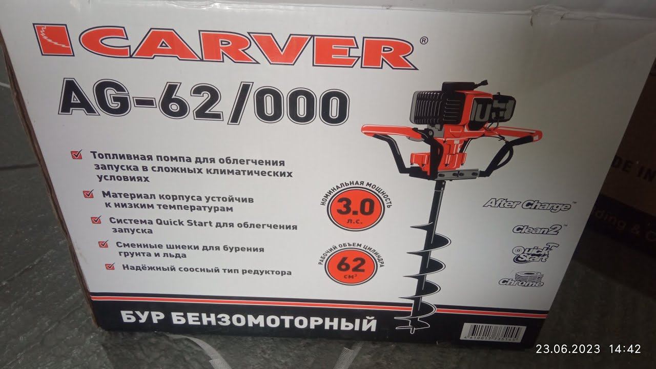 обзор CARVER AG-62/000 бензобур бензомоторный и шнек 150х1200