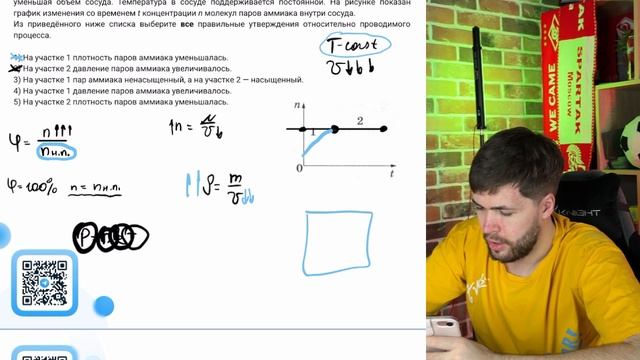 В сосуде под поршнем находятся только пары аммиака. Поршень медленно и равномерно опускают - №37478