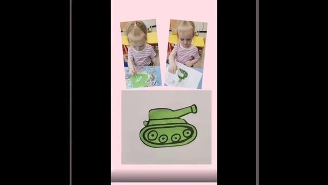 В группе "Зайчата" прошла аппликация на тему "Танк". Цель : Продолжать учить детей наклеивать готовые детали танка на бумагу, правильно составляя композицию