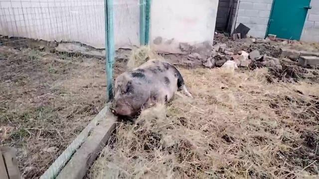 Наша Хрюша играет с сеном
