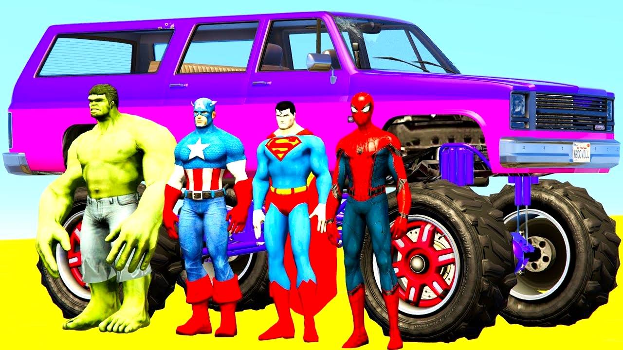 Большая Машина Джип Монстр Трак и Человек Паук - Мультики про Машинки для Детей