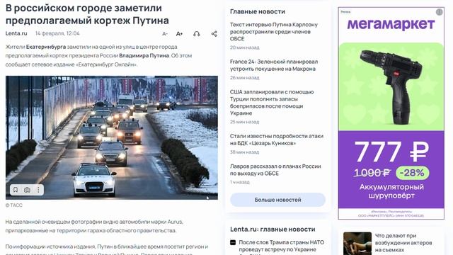 В российском городе заметили предполагаемый кортеж Путина