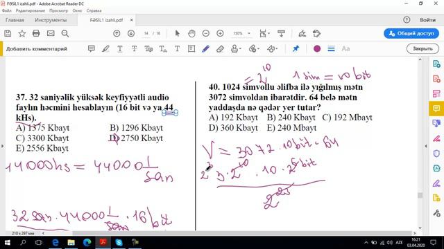 İnformasiya, ölçü vahidləri, kodlaşdırma test izahı 36-50 sual