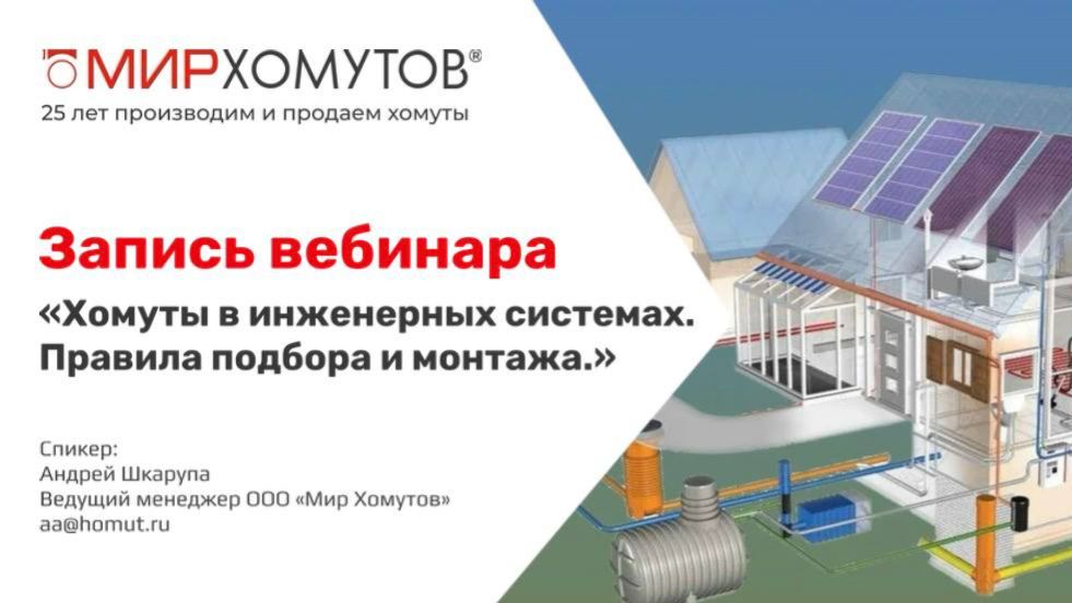 Предлагаем вашему вниманию запись вебинара: «Хомуты в инженерных системах.Правила подбора и монтажа»