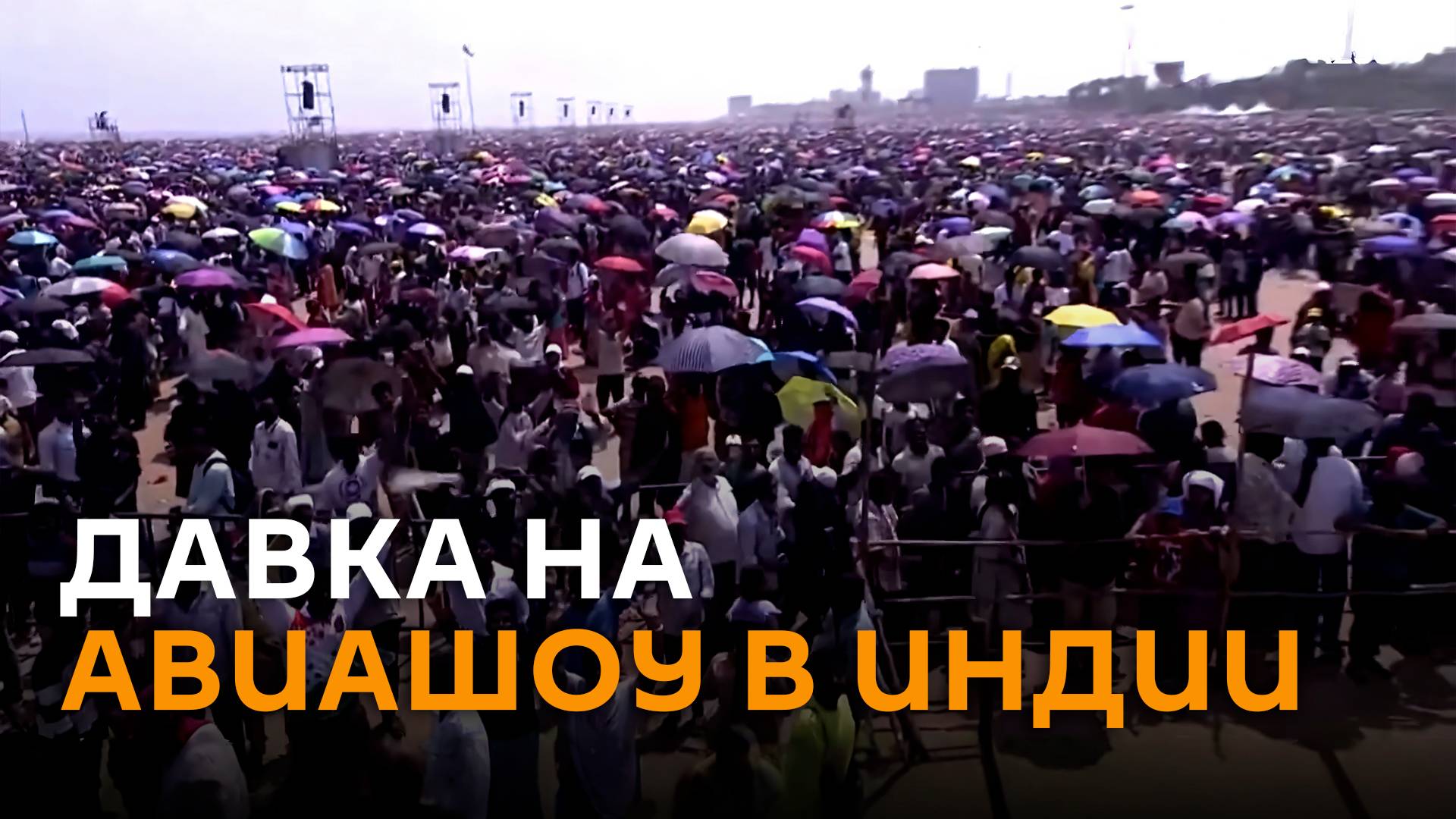 Трагедия случилась накануне во время шоу, посвященного 92-летию индийских ВВС. На двухкилометровом пляже Marina Beach собралось около 1,2 миллиона зрителей, организаторы не смогли справиться с таким наплывом людей, в результате несколько человек погибли в давке, около 40 пострадали.