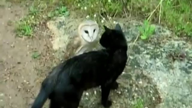 Кот играет с совой