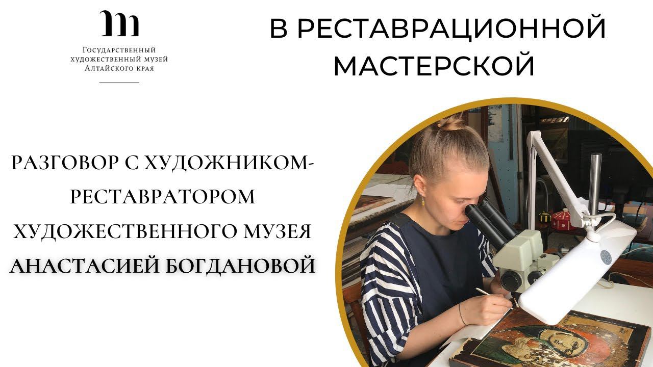 В видео мы знакомим зрителей с Анастасией Богдановой, художником-реставратором Государственного художественного музея Алтайского края, а также показываем небольшой фрагмент её работы.