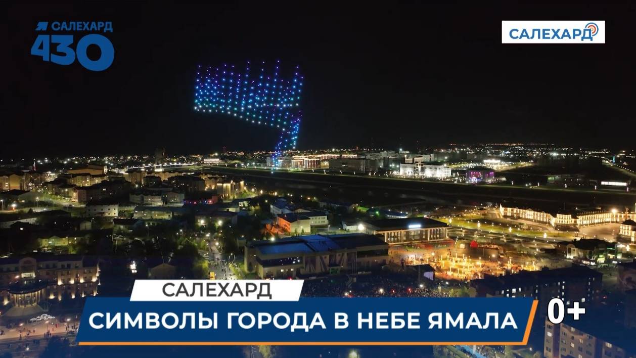 Сюрприз на День рождения! В честь 430-летия города ночное небо над столицей Ямала превратилось в огромный экран: сотни квадрокоптеров поднялись в воздух, чтобы нарисовать символы Салехарда и Ямала. Стела "Полярный круг", Мамонт "Митя", Обдорский острог, Мост "Факел" - достопримечательности города-юбиляра можно было рассмотреть с любой точки окружной столицы. #Юбилей_Для_Людей #Салехард430