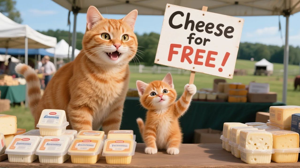 Рыжик и мама-кошка делают сыр на ферме и раздают его бесплатно на рынке 🧀💛