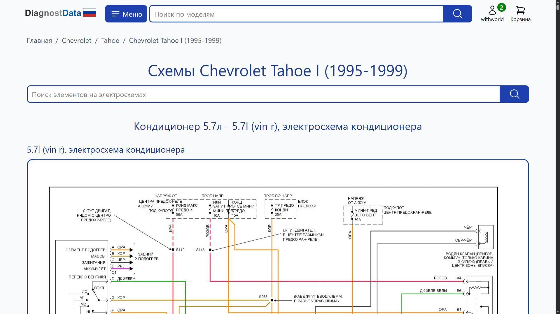 https://diagnostdata.ru/chevrolet/tahoe/i-1995-1999/ Электрохемы, распиновки, схемы электропроводки Chevrolet Tahoe I (1995, 1996, 1997, 1998, 1999 годов выпуска) 5.7L, 6.5L Схемы на русском языке для систем: Схемы Кондиционер 5.7л, Схемы Кондиционер 5.7л, Схемы Кондиционер 6, 5л, Схемы Антиблокировочные системы abs, Схемы Can шина, Схемы Вентилятор охлаждения 5.7л, Схемы Круиз-контроль 5.7л, Схемы Круиз-контроль 6, Схемы Подогрев стекол, Схемы Электроусилитель руля, Схемы Двигатель, Схемы Фары и фонари, Схемы Точки подключения масс, Схемы Фары, Схемы Клаксон, Схемы Приборная панель 5.7л, Схемы Приборная панель 6.5л, Схемы Освещение салона, Схемы Блок предохранителей и реле, Схемы Центральный замок, Схемы Управление зеркалами заднего вида, Схемы Сиденья, Схемы Стеклоподъемники, Схемы Магнитола, Схемы Блокировки переключения передач, Схемы Стартер/генератор, Схемы Подушки безопасности, Схемы Коробка передач 5.7л, Схемы Коробка передач 6, Схемы Багажник, задняя дверь, лючок топливного бака, Схемы Предупреждение, Схемы Дворники и омыватели, и др.