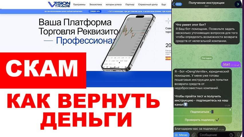 Обзор брокера Vision Trade (visiontradefunded.com), отзывы трейдеров. Это очередной брокер мошенник? Как можно вернуть свои деньги? Если вы стали жертвой финансовых мошенников: брокеров, казино, подставных криптобирж или купили онлайн-курс, который не оправдал ожиданий, свяжитесь со мной в телеграме https://t.me/DengiVernite