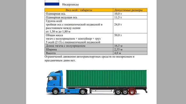 Допустимые весовые нагрузки в Нидерландах при перевозке контейнеров