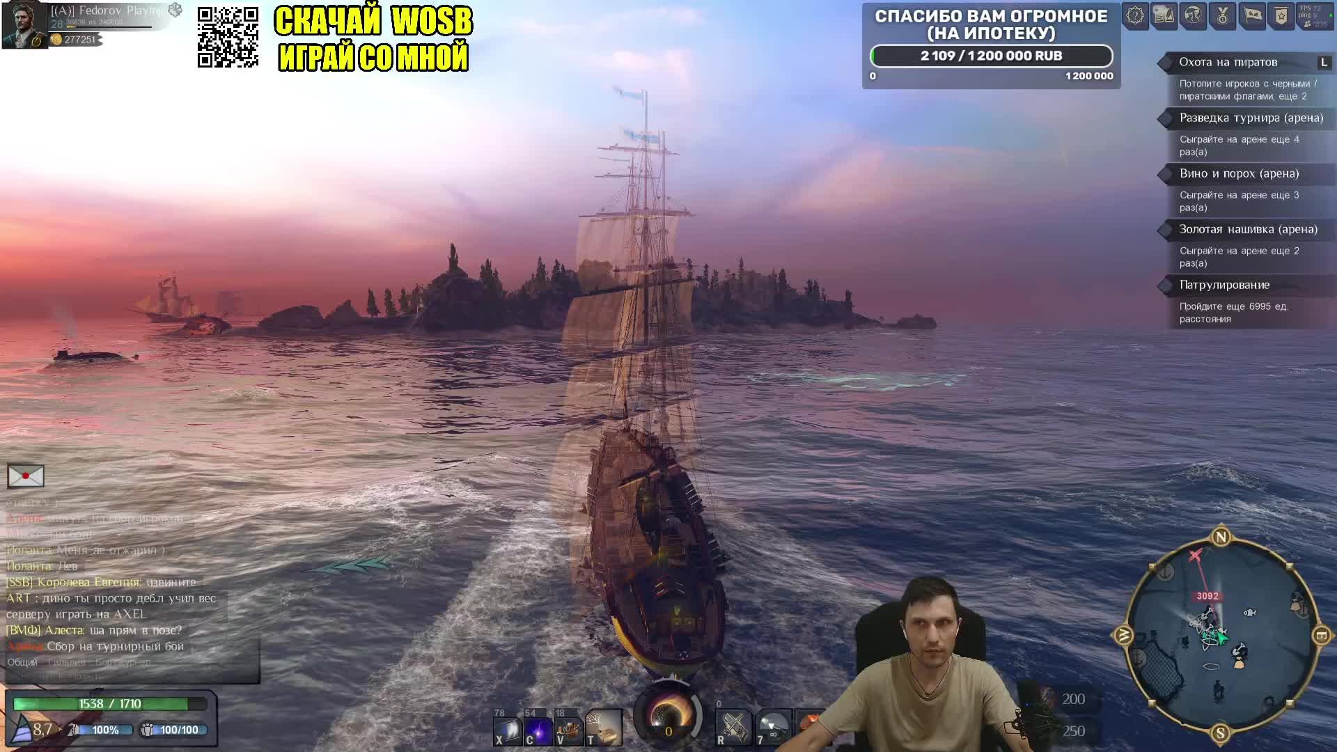 Играй вместе со мной в World of Sea Battle, вступай в мою гильдию «Мстители». Пройди по ссылке https://worldofseabattle.com?f=ref_486172 скачай и зарегистрируйся, при регистрации введи код друга 486172 и получишь: +3 дня премиум-подписки, +3 дополнительных места для кораблей. Подарить стримеру в WOSB 50 монет (60руб) https://web.worldofseabattle.com/gateway/select?sid=161976&pid=1&count=50&lang=Ru¤cy=Rub Поддержи меня голосовые сообщения от 10 р https://www.donationalerts.com/r/fedorovplaying !!!ОГРОМНОЕ СПАСИБО ПОДПИСЧИКУ "116" ЗА ЕГО ОГРОМНУЮ ПОДДЕРЖКУ !!! Подписывайся на удобную для тебя платформу. Стримы и видео будут выходить на всех каналах. Платформа https://plvideo.ru/@FedorovPlaying You Tube https://www.youtube.com/@FedorovPlaying Ru Tube https://rutube.ru/channel/44864055/ VK Видео https://vk.com/fedorovplaying Telegram https://t.me/fedorovplaying