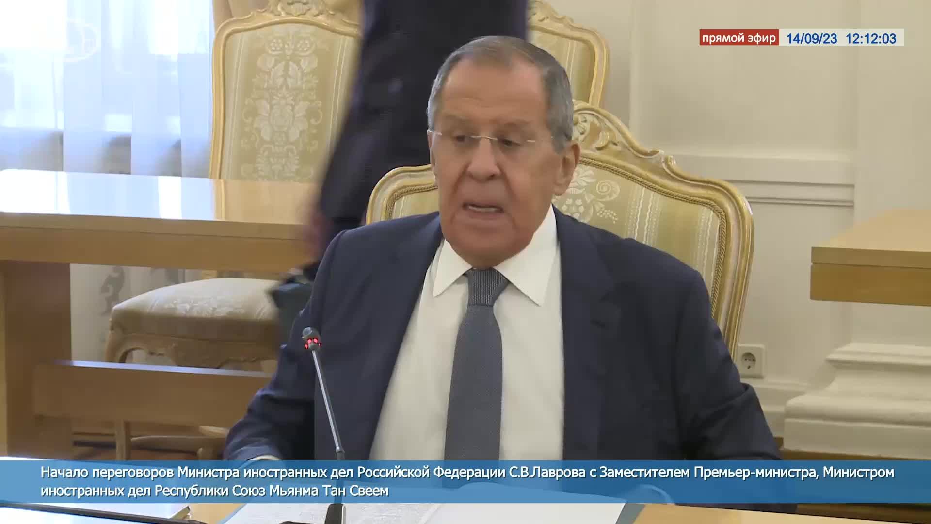 Начало переговоров С.В.Лаврова с Заместителем Премьер-министра, Министром иностранных дел Мьянмы Тан Свеем, 14/09/23