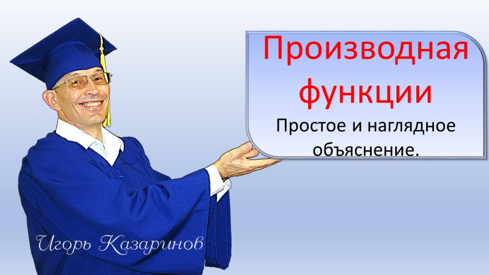 Производная функции, смысл производной - что такое и для чего нужна простыми словами наглядно на рисунке. Некоторые свойства функции - положительность и отрицательность, убывание и возрастание. Как можно примерно нарисовать график производной функции. Как записывается кратко производная функции. Методика уже помогла сотням тысяч учеников. Занятия математика, физика. Тел 8(968)812-7068. (телеграм, вайбер, вотсап) 00:00 начало и заставка 00:15 что такое функция - простое определение наглядно 00:48 свойства функции - положительность, отрицательность 01:11 свойство функции: возрастание и убывание функции 01:58 как выразить возрастание и убывание функции - быстрее или медленнее 02:33 график возрастания-убывания функции 04:25 производная функции - это скорость изменения функции: возрастания и убывания функции 04:37 как кратко записывается производная функции Ссылка на это видео https://rutube.ru/video/6784857f13da60c4da0970d7ec170129/ За 20 лет я лично как репетитор помог более чем 2000 учеников разных классов. Всего за несколько занятий я с помощью авторских методик значительно улучшаю понимание предмета. Если требуется, то увеличиваю скорость чтения и счёта. Уже после первого занятия со мной ученики видят разницу в подходах к обучению. Знания сохраняются навсегда, ученики начинают работать в классе и полностью понимать учителей и учебники. Мой канал на Рутубе https://rutube.ru/channel/27077510/ Функции https://rutube.ru/plst/356904 Мои видеоролики математика ОГЭ ЕГЭ https://rutube.ru/plst/589686 Химия https://rutube.ru/plst/878811 Физика https://rutube.ru/plst/356286 Алфавиты и грамматика https://rutube.ru/plst/226061 Мат 1-2 https://rutube.ru/plst/226062 Сложение https://rutube.ru/plst/303865 Вычитание https://rutube.ru/plst/387212 Деление https://rutube.ru/plst/947490 Умножение https://rutube.ru/plst/315521 5 подводных камней в ОГЭ по математике https://vk.com/club226389869 Выучить английский язык - как шпион за 3 месяца https://vk.com/club229779363 Моя книжка "Как быстро и легко выучить таблицу умножения (сложения, вычитания и деления)" со ссылками на все нужные видеоролики: https://ridero.ru/books/kak_bystro_i_legko_vyuchit_tablicu_umnozheniya_slozheniya_vychitaniya_i_deleniya/freeText Моя книжка ВСЯ МАТЕМАТИКА ЗА 1-Й — 5-Й КЛАСС ПРОСТО И ДОХОДЧИВО: https://ridero.ru/books/vsya_matematika_za_1-5_klass_prosto_i_dokhodchivo/ в первых классах начальной школы Мой канал на Рутубе https://rutube.ru/channel/27077510/ Канал Дзена - https://dzen.ru/bestschool математика начальная школа, сложение, вычитание, таблица сложения, умножение, деление, таблица умножения, таблица деления, таблица вычитания, математика базовый уровень егэ , математика профильный уровень егэ, профильная математика, математика быстро, математика быстро выучить, математика доходчиво, математика просто, математика понятно, математика ОГЭ, математика ЕГЭ, математика 1 класс, математика 2 класс, математика 3 класс, математика 4 класс, математика 5 класс, математика 6 класс, математика 10 класс, математика 7 класс, математика 8 класс, математика 9 класс, алгебра 8 класс, алгебра 9 класс, математика 11 класс, алгебра 10 класс, алгебра 11 класс геометрия 7 класс, геометрия 8 класс, геометрия 9 класс, геометрия 10 класс, геометрия 11 класс