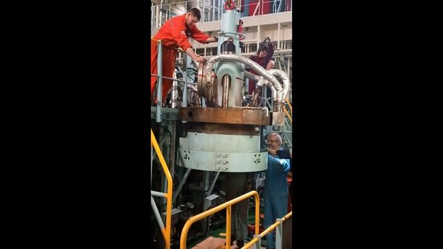 Техническое обслуживание 6-го цилиндра судового главного двигателя (чистка, замеры величины износов, замена поршневых колец т.д.)