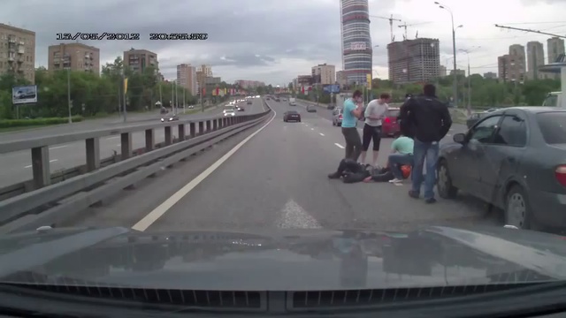 В Москве (Россия) на выезде из тоннеля ВДНХ «Мазда» «притерла» мотоциклиста к левому отбойнику.