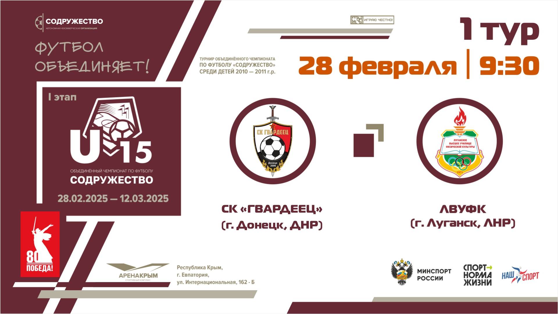 1 ТУР | U-15 | СК "Гвардеец" (г. Донецк, ДНР) - ЛВУФК (г. Луганск, ЛНР)