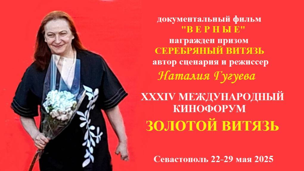 Лаурет кинофорума ЗОЛОТОЙ ВИТЯЗЬ Наталия Гугуева . Севастополь. май 2025г.