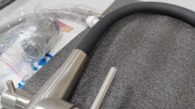 Смеситель Кухня SANTREK AQUA-825 "INOX" шар d-35 нерж. с подключением фильтра питьевой воды (черный)
