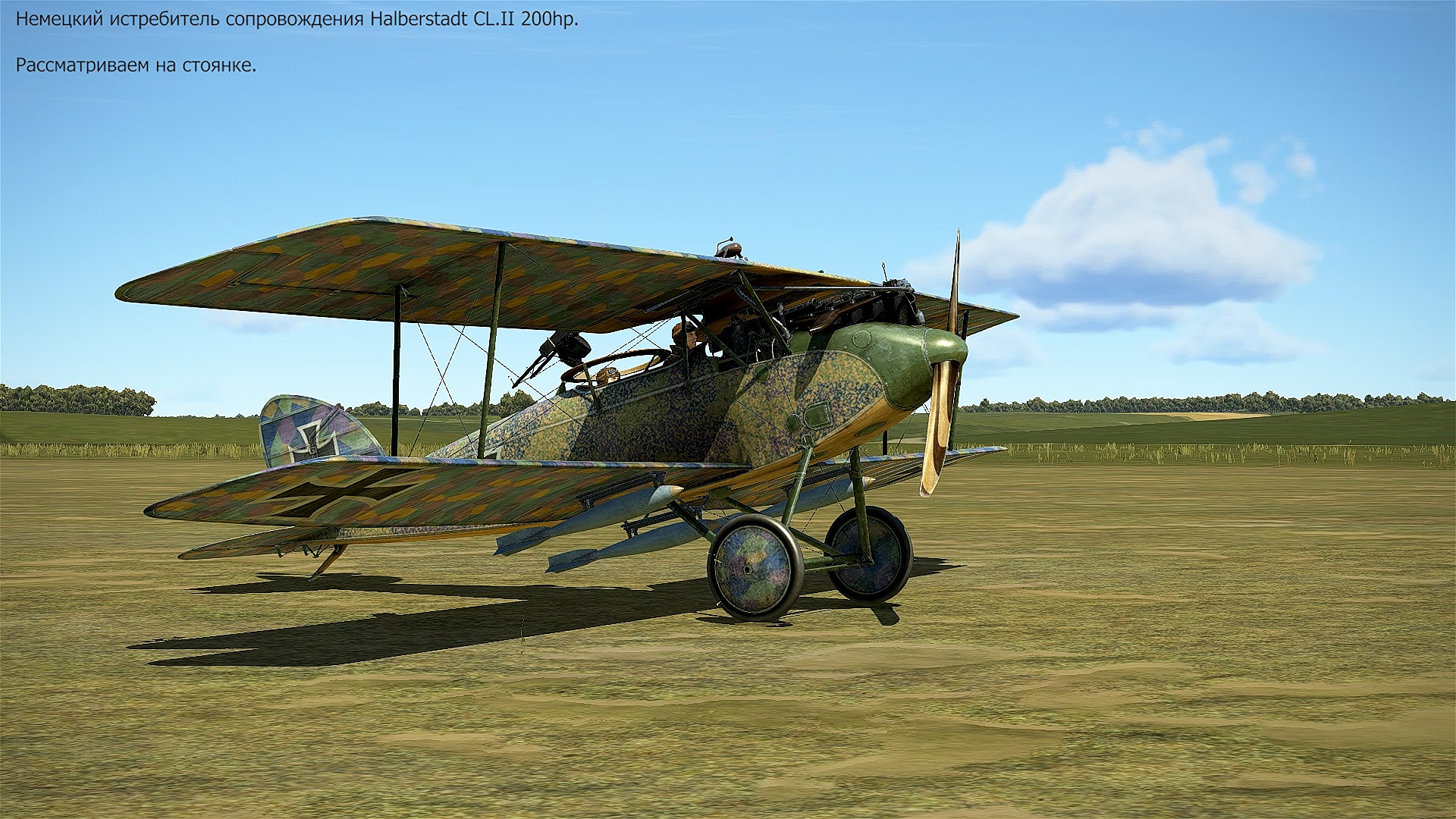 Немецкий истребитель сопровождения Halberstadt CL.II 200hp. Рассматриваем на стоянке. Симулятор «Flying Circus – Volume II».