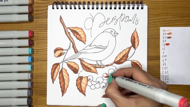 Рисунок скетч маркерами "Февраль 2022" для скетчбука | Срисовка картинки для начинающих