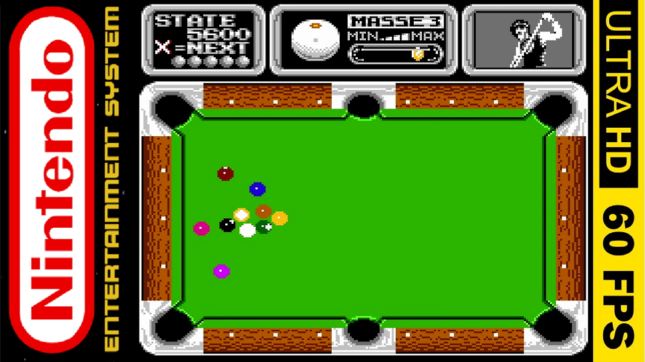 This is a tool-assisted speedrun. For more information, see https://tasvideos.org/4906M TAS originally published on 2022-11-13 Side Pocket is a billiards video game that has been ported to various systems, one of them being the NES. Win your way up the ranks by playing national pool as you go from city chump to world-class hustler. Get enough points when playing on a table and you move on to the next one. ShesChardcore ( https://tasvideos.org/Users/Profile/S... ) rigorously plays through the game and uses most optimal solutions found for each table in order to beat the game as fast as possible.