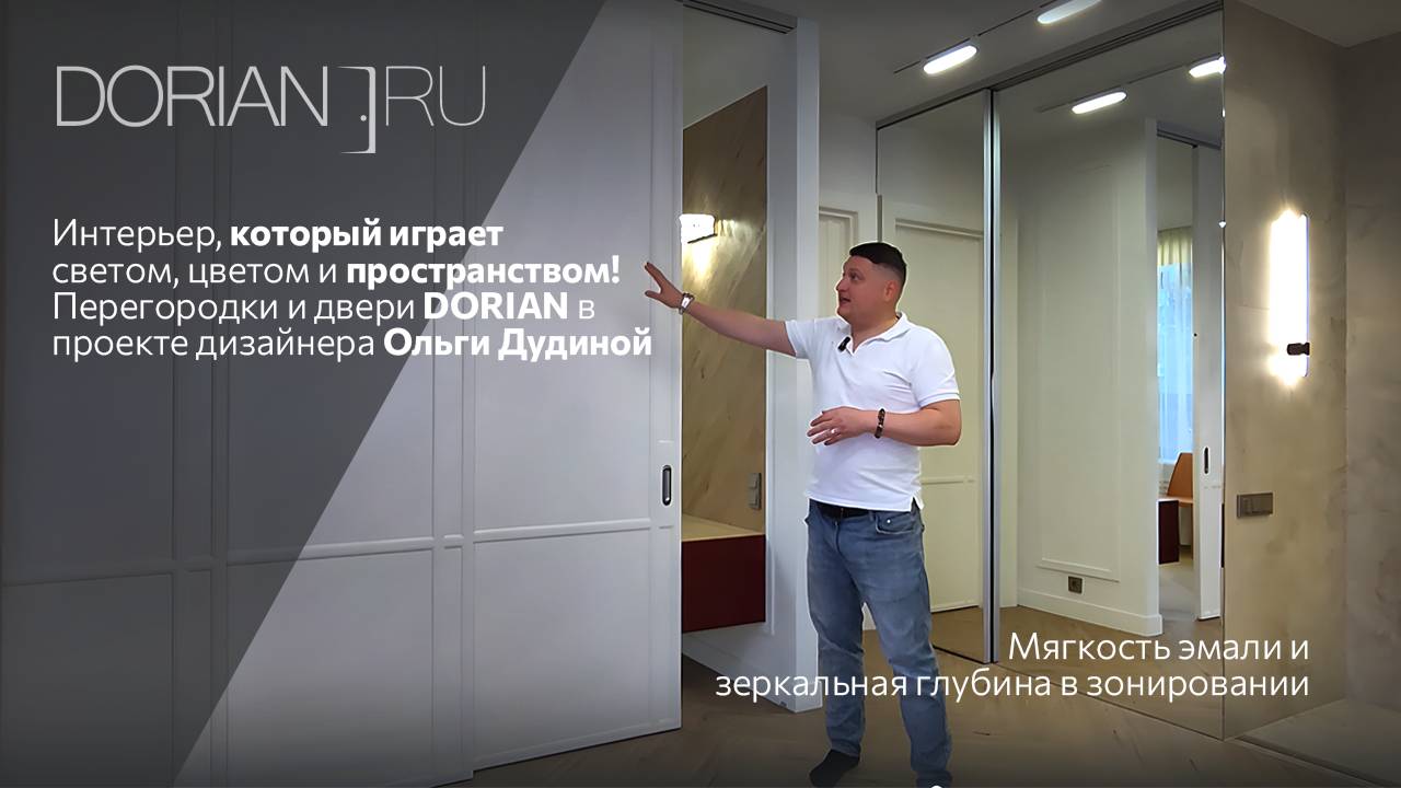 Мягкость эмали и зеркальная глубина: Перегородки и двери DORIAN в видеообзоре проекта Ольги Дудиной