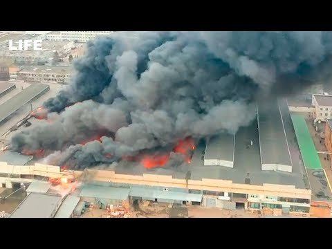 Стрим с дрона. Мощный пожар на юге Москвы