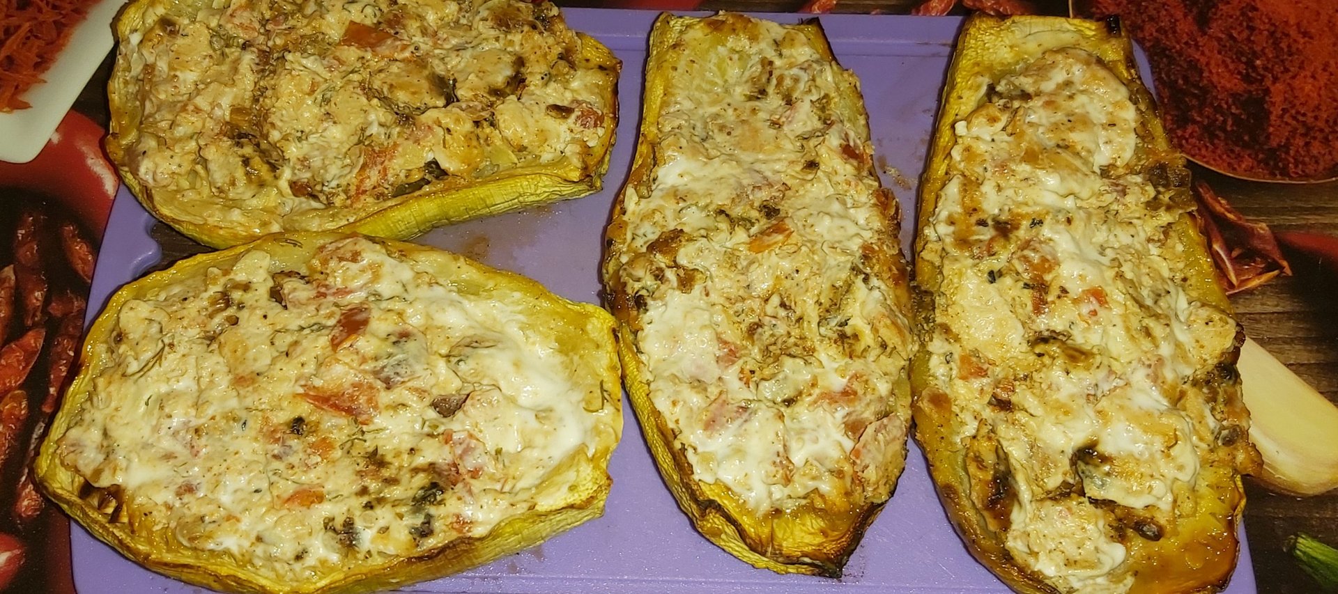Лодочки из кабачков с курицей