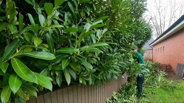 Со мной связался новый клиент, которому нужно было, чтобы кто-то подстриг изгородь из туи длиной около 30 м и запущенную лавровую изгородь длиной около 20 м. Тую требовалось укоротить с 2,5 м до 1,6 м, лавр — тоже. Прибыв на место, клиент сразу сказал мне, что видел меня на YouTube, и я был приятно удивлён. Оценив объём работы, мы с помощником приступили. Сначала решили подстричь изгородь из туи, так как я предположил, что эта работа займёт около 3 часов, а затем укоротить лавр! Весь день моросил лёгкий дождь, иногда усиливаясь. Я принялся за стрижку кусторезом Stihl HS82R и срезал высоту, тем временем мой помощник спиливал толстые стволы изгороди бензопилой Makita. Мы укоротили тую до 1,6 м всего за 1 час. Довольные такой скоростью, мы решили сделать короткий перерыв на кофе. Затем я начал обрезку лавра, и только когда приступил к стрижке со стороны соседа, смог оценить весь объём работы и понял, что «поторопился радоваться», так как через 3 часа должно было стемнеть. Так и вышло — на стрижку запущенного лавра с уборкой у нас ушло 5 часов. К тому же у меня не было возможности разгрузить прицеп, и я решил загрузить его полностью. Мы закончили работу, когда уже стемнело, а хозяин был очень доволен и заплатил нам за работу вдвойне! 12.02.2024