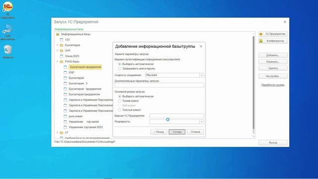 Работа в 1С. Добавление информационной базы | Парозенкова Светлана. РУНО