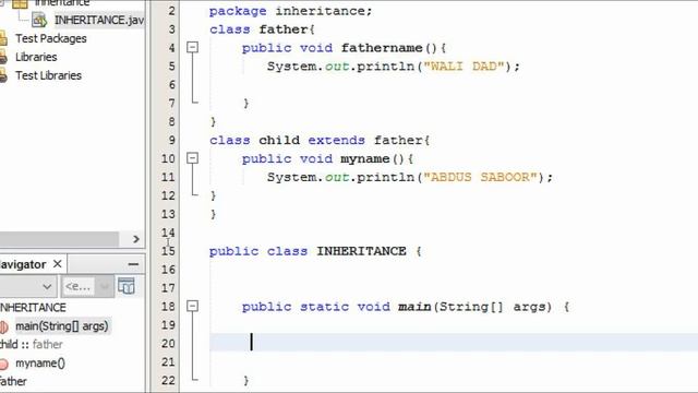 program of inheritance in which one class extends in java