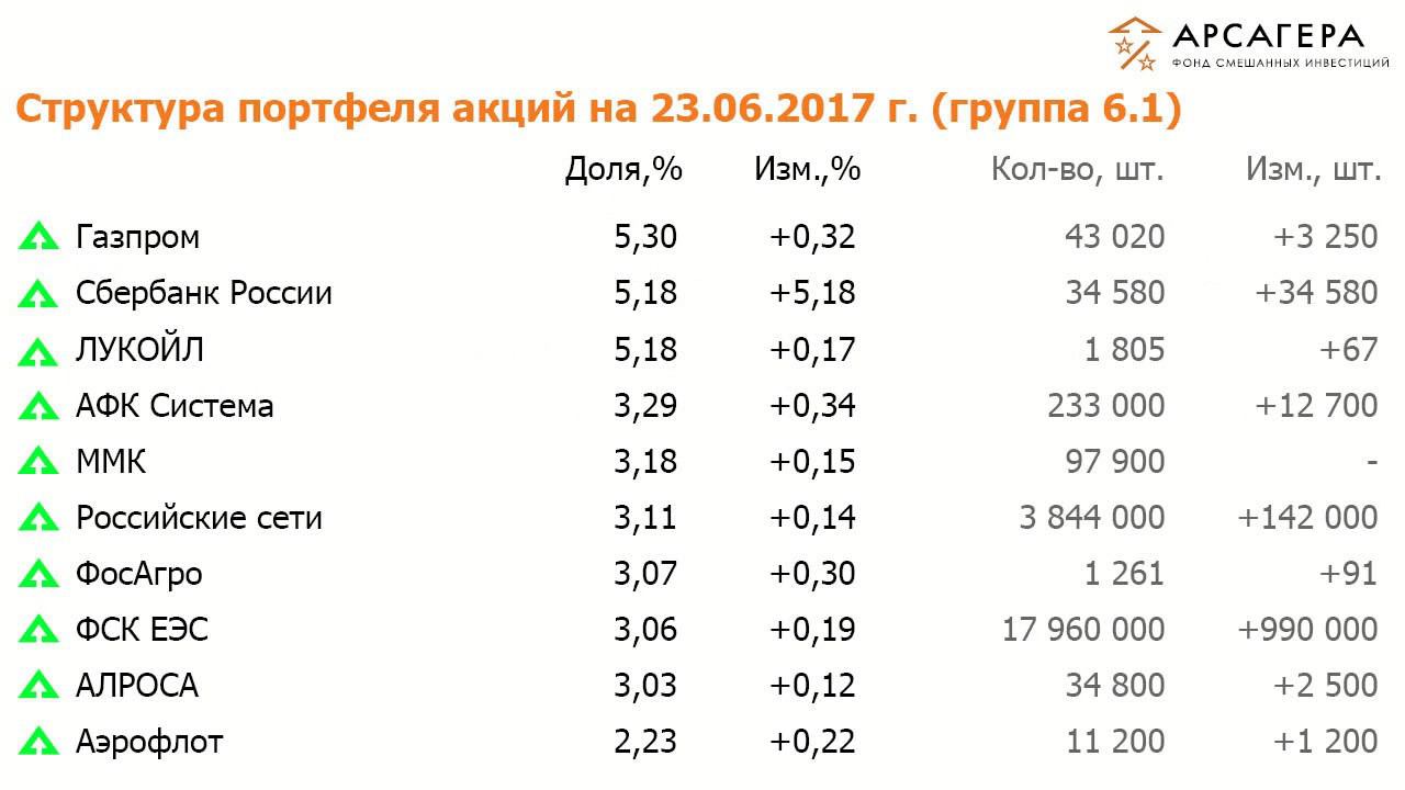 Наши фонды. ОПИФСИ «Арсагера - фонд смешанных инвестиций» с 09.06.17 по 23.06.2017