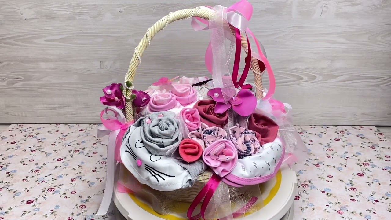 Подарочная корзинка с одеждой для новорожденной девочки. Эксклюзивные подарки для новорожденных https://ranunculus.ru/podarki-na-rozhdenie-rebenka/ Оригинальные букеты из детской одеждыhttps://ranunculus.ru/podarki-na-rozhdenie-rebenka/bukety-iz-detskoy-odezhdy/ Сайт https://ranunculus.ru