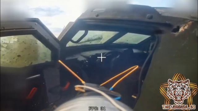 Активные боевые боевые действия в Сумской зоне безопасности. Успешное поражение застрявшего в воронке при отходе с позиции бронеавтомобиля ВСУ FPV-дроном ВС РФ южнее Яблоновки. Удаление от линии боевого соприкосновения 1.5 км.