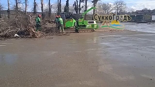 Самоходный измельчитель древесины в работе в #holidayhouse в селе #сукко #холидейхаус #анапа