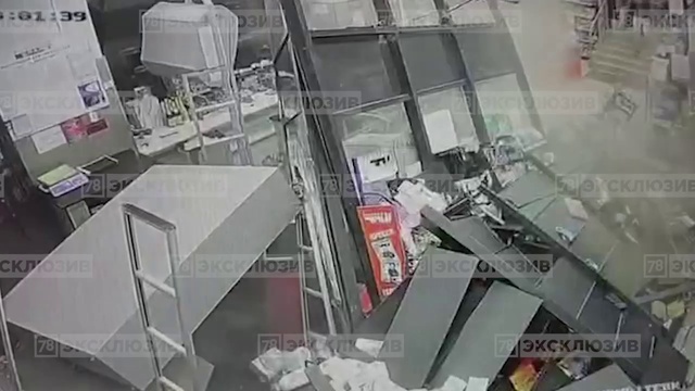 Момент обрушения пола в супермаркете
