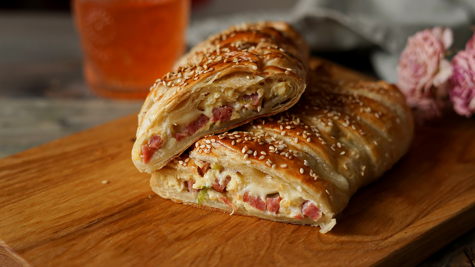 Простой пирог. Плетенка с яичницей и колбасой