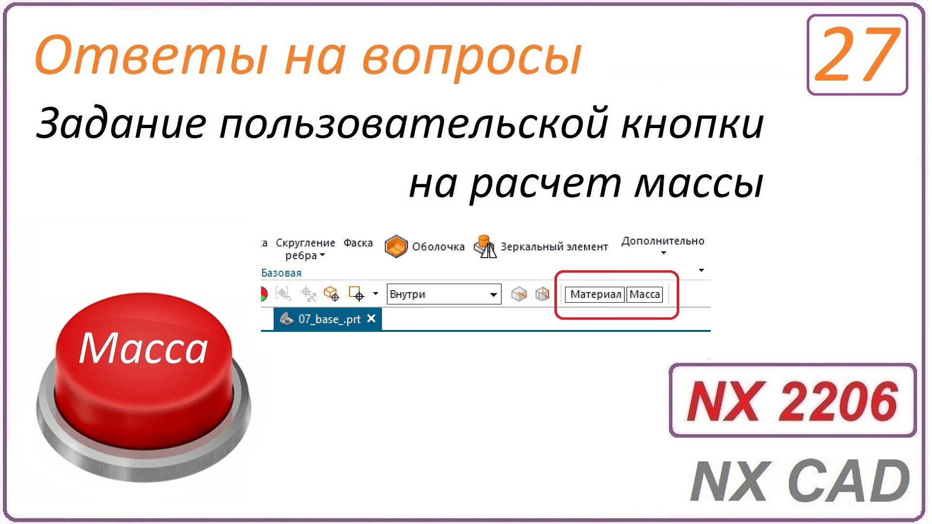 В данном видео показано задание пользовательской кнопки на расчет массы в NX Как скачать курс к себе на компьютер https://www.youtube.com/watch?v=4CTKtXegRJg Дорогие друзья, присоединяйтесь к телеграм каналу, заливаются новые и старые видео, различные статьи о NX, книги на русском и английских языках, презентации, файлы к урокам, объявления и пр. https://t.me/urokinx Предлагаю посмотреть видео как заниматься по курсу https://www.youtube.com/watch?v=dECJLfqJ_D0&t=0s&index=22&list=PLrlbZU2HDT4m_jH5dYT-hMmO0WDSpREvR О курсах. Порядок освоения. Отличия и особенности https://youtu.be/rIpcvp8q-Hc О Телеграм канале https://youtu.be/NW7Y2ew2Syg Смотрите видео как записать свой вопрос преподавателю https://youtu.be/EfwiTwDe088 Как пользоваться справкой https://www.youtube.com/watch?v=8SNRFFah7mE&list=PLrlbZU2HDT4mPQaJGlh--jgSVeHQJN8lC История развития NX https://www.youtube.com/watch?v=EftMWaG15ts&list=PLrlbZU2HDT4mPQaJGlh--jgSVeHQJN8lC Здравствуйте, меня зовут Александр Стариков, я готовлю интернет версии курсов NX. Мой имейл: alex-starikov@yandex.ru